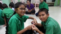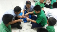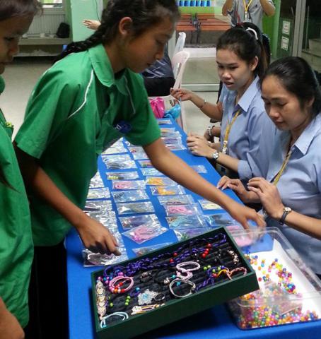 คุณผ่องพรรณ เจนจิรัฐิติกาล ผู้จัดการฝ่ายวางแผนและพัฒนาทรัพยากรบุคคล บริษัทบิวตี้เจมส์ แฟคตอรี่ จำกัด เครือข่ายทางการศึกษากับโรงเรียนคลองกะจะ นำคณะวิทยากรมาสอนการประดิษฐ์สร้อยประดับให้กับนักเรียนในวิชากอท.งานประดิษฐ์ ตาม โครงการถักสร้อยร้อยรักษ์ |