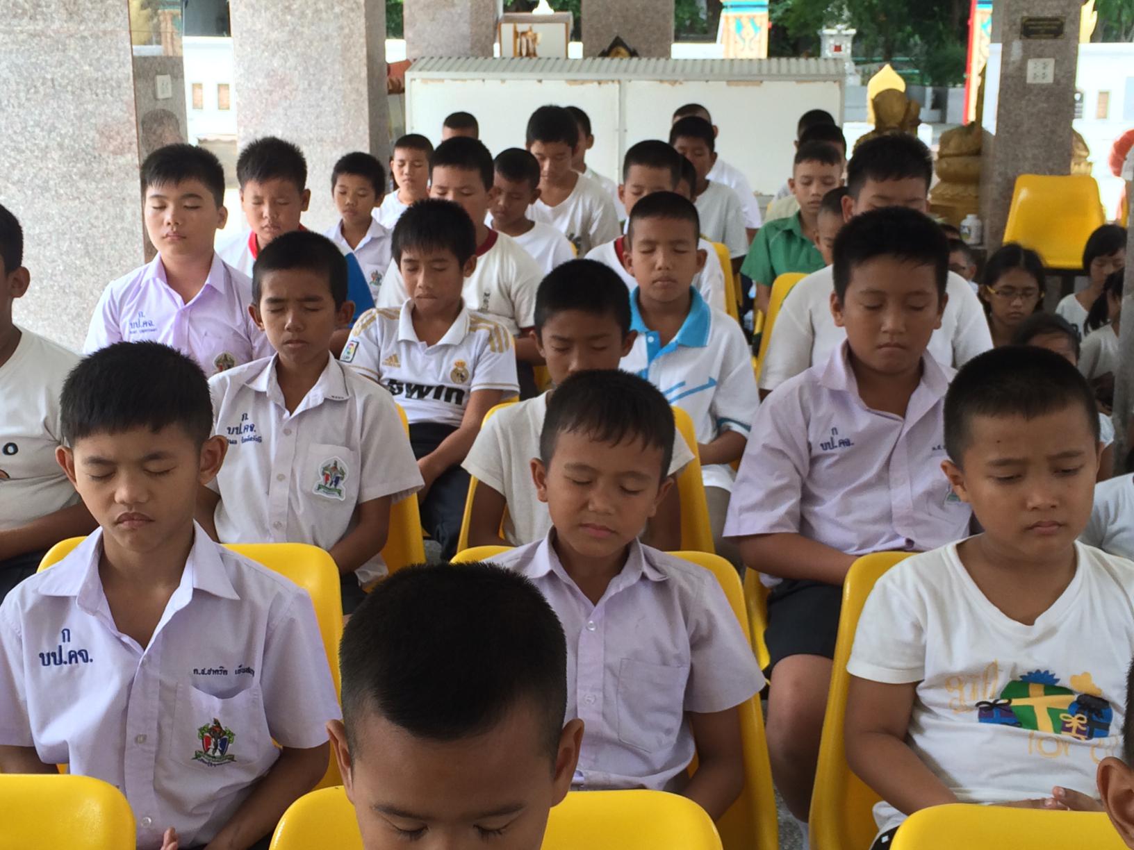 นักเรียนฝึกจิต นั่งสมาธิ |