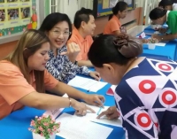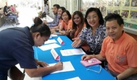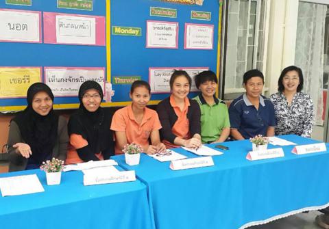 ทีมงานคณะครูประจำโต๊ะลงทะเบียนต้อนรับผู้ปกครอง