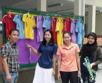 ครูแมว(อารยา) ครูปุ๊(กรองกาญจน์) ครูอร(อรอุมา) ประจำจุดเสื้อกีฬาสีนักเรียน