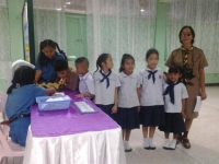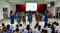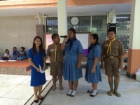 ด.ญ.รัตนา ทองขาว นักเรียนชั้นประถมศึกษาปีที่ 5/2 จากพรรค เก่ง กล้า ท้า ทำ รองประธาน |