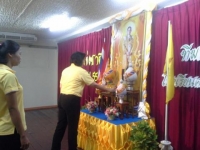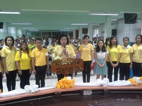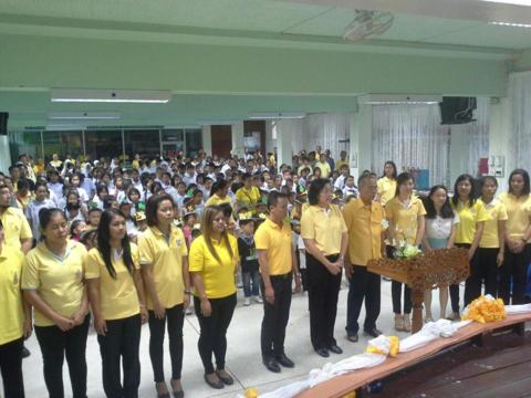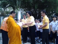 ช่วงเช้า ผู้อำนวยการ รองผู้อำนวยการ คณะครูและบุคลากร รวมทั้งนักเรียนร่วมกันทำบุญตักบาตร |