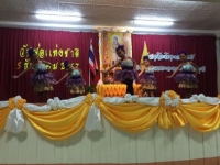 นางสาวศศิธร ชาลีพรหม ผู้อำนวยการสถานศึกษา เปิดกรวยดอกไม้และถวายพานพุ่มเงิน-พุ่มทอง |