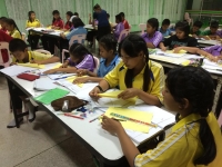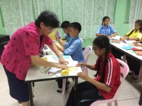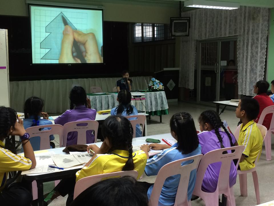 นักเรียนตั้งใจพับกระดาษกันมากๆ |