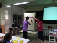 ตัวแทนนักเรียน ด.ช.อองซาน คาดคะเนขนาดของริบบิ้น |
