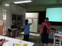 นอกจากนี้คุณครูนราภรณ์ คุณครูประจำชั้นประถมศึกษาปีที่ 6 ช่วยอำนวยความสะดวกให้วิทยากรและดูแลนักเรียนเช่นกัน |
