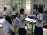 พี่ๆ จาก รร.นาคนาวา กำลังสาธิตการเล่นเกม