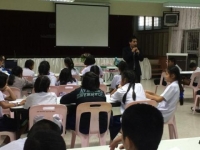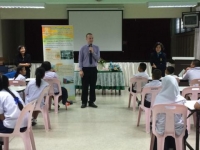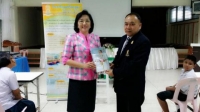 นายเกษม ผู้อำนวยการ รร.ศรีพฤฒา กล่าวทักทายนักเรียน และการจัดการเรียนการสอน |