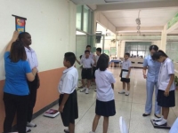 นักเรียน ป.6 หลังจากแนะแนวศึกษาต่อ ม.1 แล้ว ก็มาชั่งน้ำหนักและวัดส่วนสูง