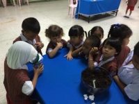 ฐานที่ 1 มหัศจรรย์ในดิน ให้นักเรียนสังเกตุอากาศและสิ่งมีชีวิตที่อาศัยอยู่ในดิน |