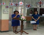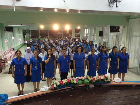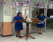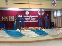 นางสาวสุดารัตน์ อินเหลี่ยม ผู้นำยุวกาชาด อ่านคำแถลงสภากาชาดไทย |