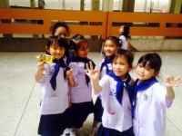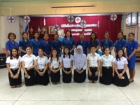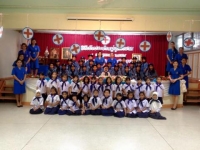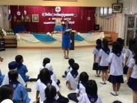 คุณครูอารยา ดอกรักษ์ ผู้นำยุวกาชาด ถามสมาชิกยุวกาชาดใหม่ |
