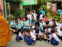 นางสาวศศิธร ชาลีพรหม ผู้อำนวยการสถานศึกษา พร้อมด้วยคณะครู ผู้ปกครอง และนักเรียนร่วมกันทำบุญตักบาตร |