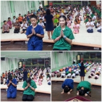 เด็กๆชาวพุทธรู้ เข้าใจ และฝึกปฏิบัติการกราบแบบเบญจาคประดิษฐ์ |