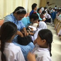 เช้าวันนี้ ผอ.สุนันทา นำคณะครู นักเรียนและผู้ปกครอง ทำบุญตักบาตร ภายในงานมีกิจกรรมของนักเรียน มอบรางวัลให้ครูที่ชนะการผลิตสื่อการสอนได้สวยงาม และนักเรียนที่ชนะการประกวดการเขียนเรียงความวันแม่ วาดภาพระบายสี |